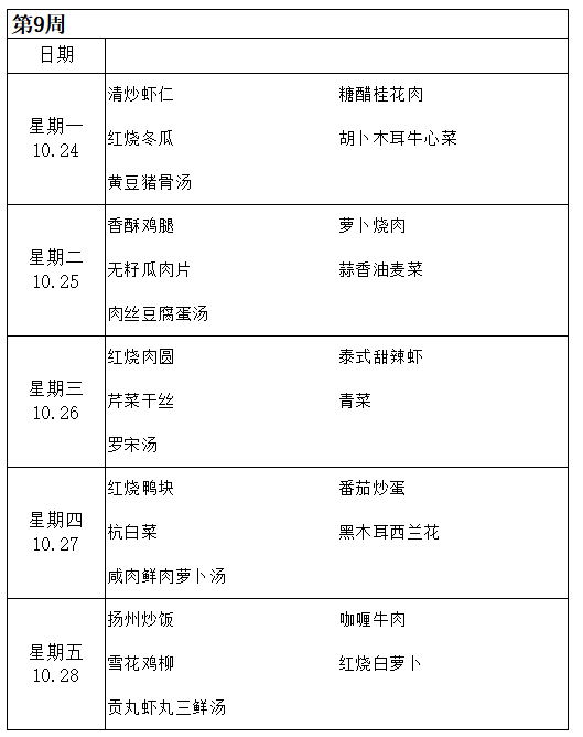 2022学年第一学期学生菜谱(境内)
